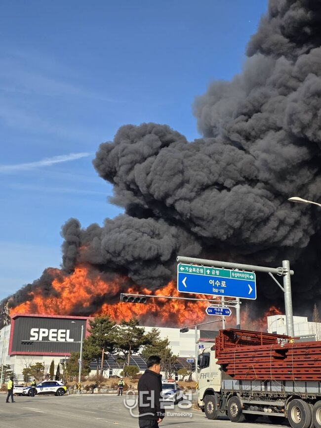 30일 오후 2시 56분 발생, 3시간 만에 초진 - 네팔·카자흐스탄 국적 외국인 노동자 2명 고립 추정 - 무인 소방로봇 투입, 건물 붕괴 우려로 수색 난항