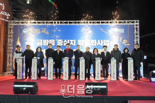 음성군이 지난 9일 금왕읍 무극시장 앞 응천 제방 일원에서 '금빛인도교' 개통식을 갖고 있다.■ 금왕의 밤을 수놓는 화려한 야간경관특히, 이 다리는 야간경관 콘텐츠에 힘을 줬다. 다리에 설치된 화려한 경관조명과 미디어파사드는 응천의 밤을 아름답게 수놓으며 주민들과 방문객들에게 새로운 볼거리를 제공한다. 군은 이를 통해 지역 상권 접근성이 개선되고 유동 인구가 증가할 것으로 기대하고 있다.