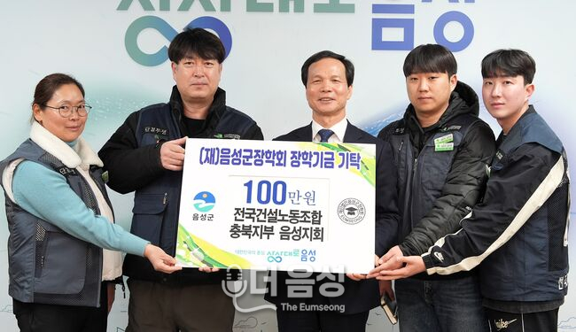 전국건설노동조합 충북지부 음성지회(지회장 안정규)는 지난 25일 음성군청을 방문해 (재)음성군장학회에 장학금 100만 원을 기탁했다. 이번 기탁금은 건설 현장에서 땀 흘리는 조합원들의 마음을 모아 마련되어 그 의미를 더했다.