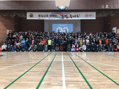 통일교육 캠페인 ‘통일 좋아요’라는 캐치프레이즈로 진행된 이번 행사는 소사벌 초등학교 4학년 240명 학생들의 호응 속에 통일교육, 통일대한민국 그리기, 북한친구들에게 편지쓰기, 통일노래 배우기 등 다채로운 코너로 구성해 진행됐다.