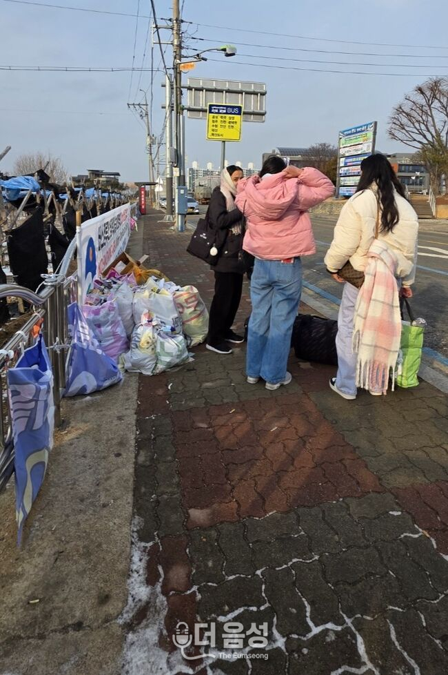 혹한 속에서 버스를 기다리는 주민들 대소면의 한 주민은 "읍 승격이라는 명분보다 중요한 것은 주민들의 실질적인 삶의 질"이라며 "쓰레기 더미 옆에 주민들을 방치하는 행정은 명백한 직무유기이자 기만"이라고 강하게 비판했다.