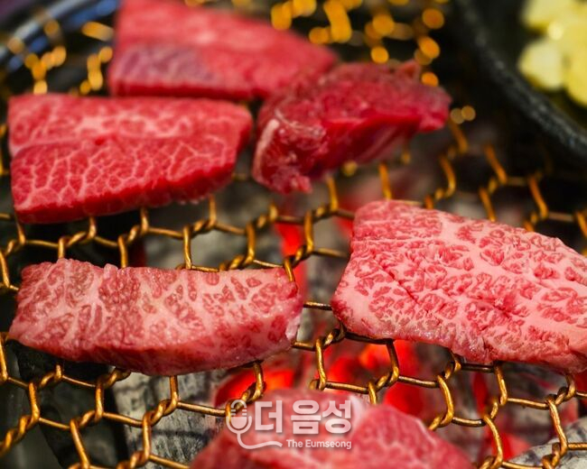 잘 달궈진 참숯 위에 구워지는 한우 스페셜 모듬