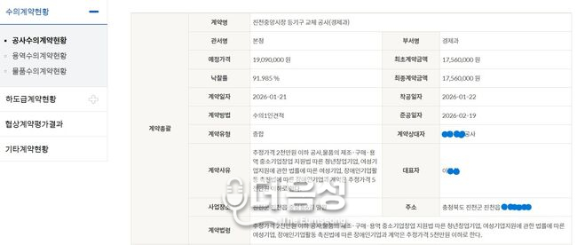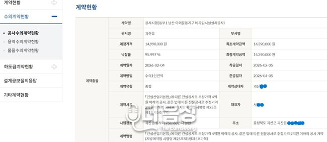 그러나 문제는 법적 최소 기준에만 머물러 있다는 점이다. 수의계약은 일반입찰보다 투명성과 설명 책임이 더욱 요구되는 계약 방식임에도, 음성군은 공개 범위를 최소화하며 행정의 책임을 스스로 좁히고 있다는 비판을 받고 있다. 법망은 피했을지 모르나, 주민의 신뢰를 얻기 위한 행정의 의지는 보이지 않는다는 지적이다.