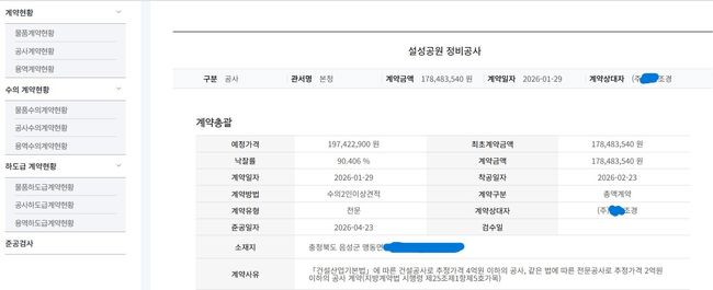괴산군 공사 수의계약 현황