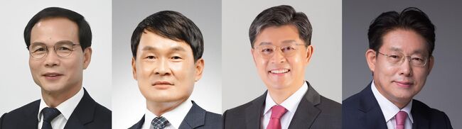 사진 왼쪽부터 더불어민주당 현직 조병옥 군수, 이상정 도의원, 국민의힘 임택수 전 청주부시장, 박노학 전 음성군 부군수