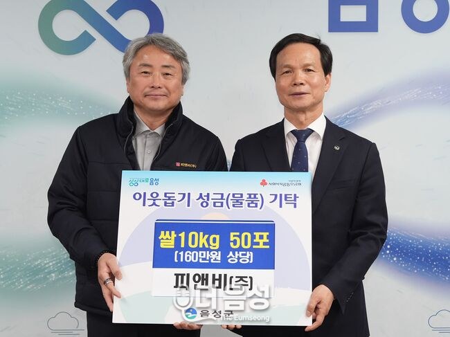 피앤비(주)는 19일 음성군청을 방문해 지역 내 어려운 이웃들을 위해 사용해달라며 쌀 10kg들이 50포를 기탁했다. 이번 기탁은 경기 침체로 어려운 시기를 겪고 있는 지역 취약계층에게 실질적인 도움을 주기 위해 마련됐다.
