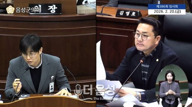 제386회 음성군의회 임시회 제2차 본회의에서 박흥식 의원이 음성읍 청년 인구 감소 대책 및 국립소방병원 지역 주민 우대 정책 등에 대해 강한 어조로 질의하고 있다. (사진=음성군의회 동영상 화면 캡처)음성군의회 제386회 임시회 제2차 본회의에서 음성군 청년 인구 감소 문제가 최대 화두로 떠올랐다. 특히 군청 소재지이자 중심 생활권인 음성읍에서 최근 2년 사이 청년 약 400명이 감소한 것으로 나타나며, 지역 정주 여건에 대한 근본적인 대책 마련이 시급하다는 지적이 제기됐다.