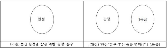 그동안 계란의 품질등급은 포장지에만 표시돼 포장을 제거하면 확인이 어려웠고, 껍데기에 찍힌 ‘판정’ 표시를 두고 일부 소비자가 사육환경번호나 품질등급으로 오해하는 사례도 있었다. 농식품부는 이러한 불편을 해소하기 위해 포장지 없이도 계란의 품질등급을 바로 알 수 있도록 표시 방식을 개선했다.