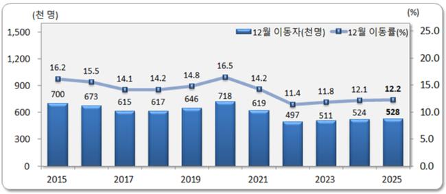 • 이동률 12.2%로 0.1%p↑…시도내 이동은 감소, 시도간은 4.5% 증가