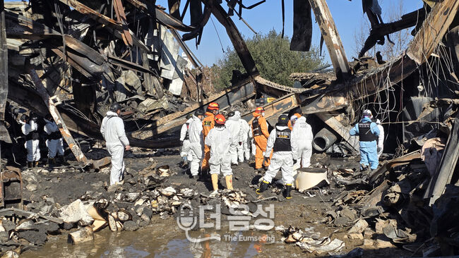 지난달 30일 발생한 충북 음성군 생활용품 제조 공장 화재 현장에서 실종자의 것으로 추정되는 '뼈 형태 물체'가 발견되어 경찰이 긴급 감정에 나섰다. (사진 = 충북소방청)지난달 30일 발생한 충북 음성군 생활용품 제조 공장 화재 현장에서 실종자의 것으로 추정되는 '뼈 형태 물체'가 발견되어 경찰이 긴급 감정에 나섰다. 화재 발생 7일째에 접어들었으나, 현장의 심각한 훼손과 붕괴 위험으로 인해 남은 실종자 수색은 장기화될 조짐을 보이고 있다.